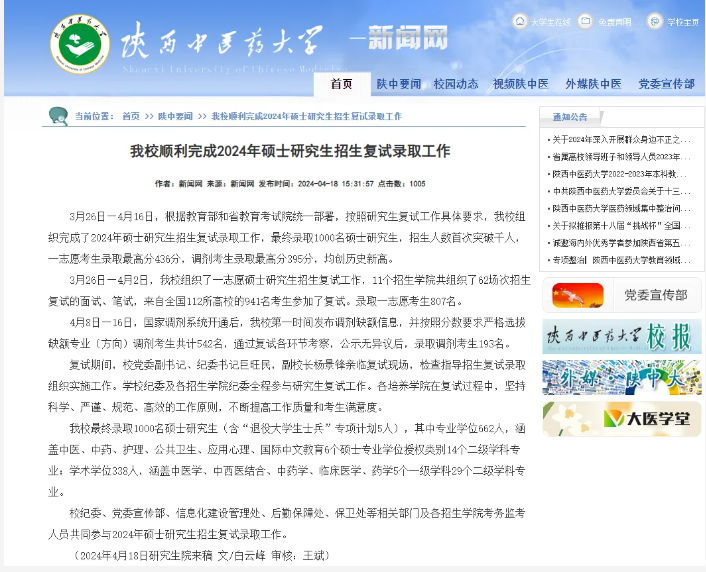 分析:陕西中医药大学的录取人数首次突破千人,且一志愿和调剂考生的录取最高分都创下历史新高,显示了该校在中医药领域的教育质量。