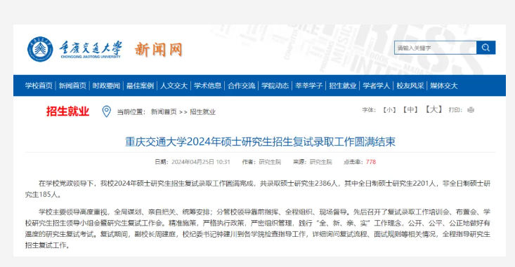 分析:重庆交通大学的全日制硕士研究生录取人数是其非全日制的近12倍,显示了该校对全日制教育的重视。