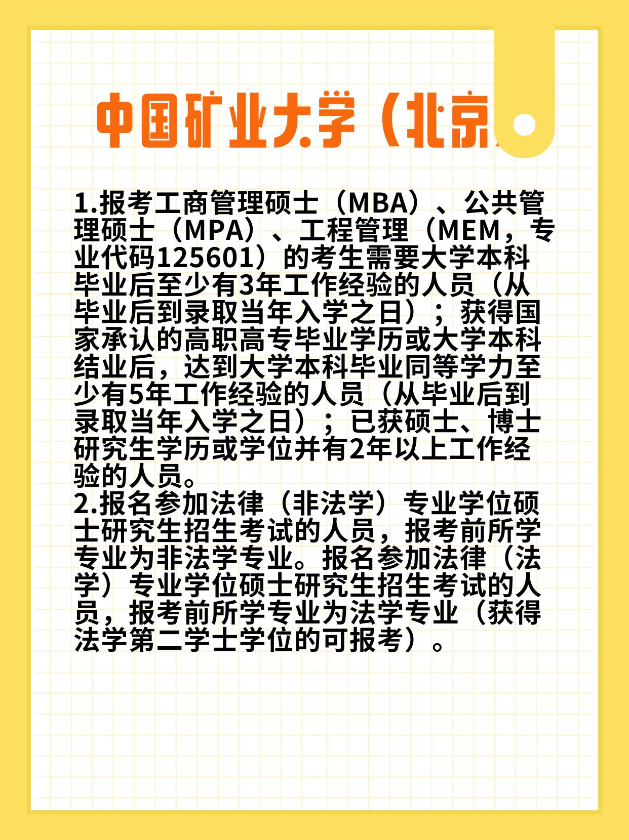 MBA/MPA/MEM(125601):本科毕业满3年,高职高专/本科结业满5年,硕博毕业满2年
