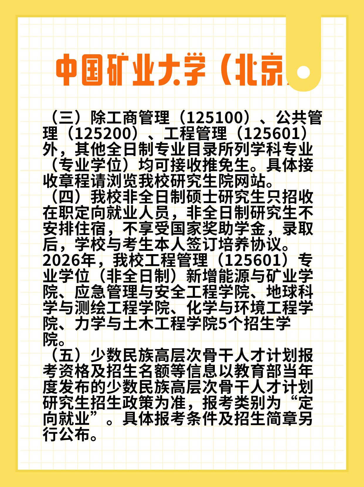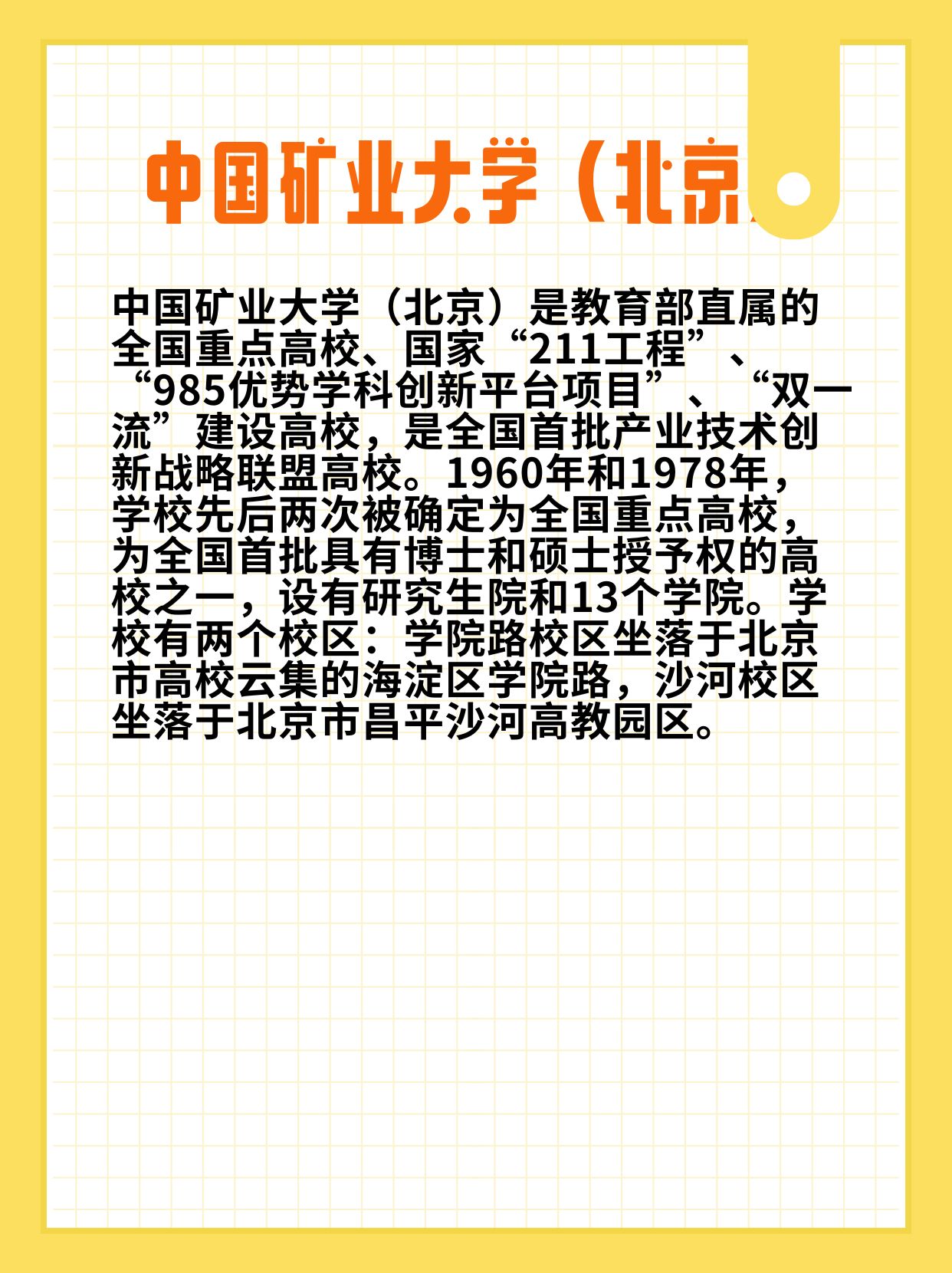 宝子们!中国矿业大学(北京)2026硕士招生简章新鲜出炉✨作为教育部直属“211”“双一流”高校,俩校区分别在海淀学院路和昌平沙河,地理位置超优越~13个学院+研究生院,实力在线!