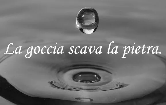 "La goccia scava la pietra"这句谚语在意大利广泛流行,这句话犹如智慧的珍珠一般,它很真实,经常会被用作一句鼓舞人心的句子。同样的意思还可以说:"A goccia a goccia si scava la pietra."或者"A goccia a goccia s'incava la pietra.",又或是"Goccia dopo goccia buca la roccia.",还有一种押韵的说法是"La goccia scava la roccia."。