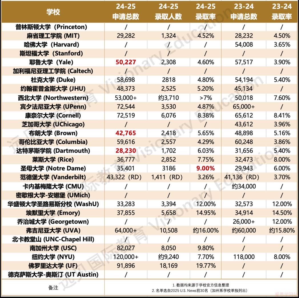 我们为大家整理了截至目前美本top 30院校官网已经公布的24-25申请季录取数据。