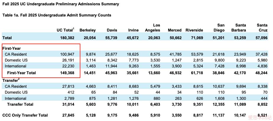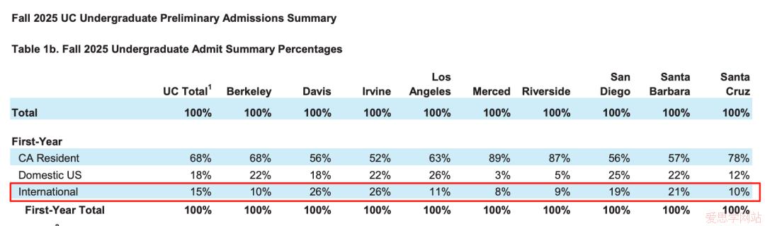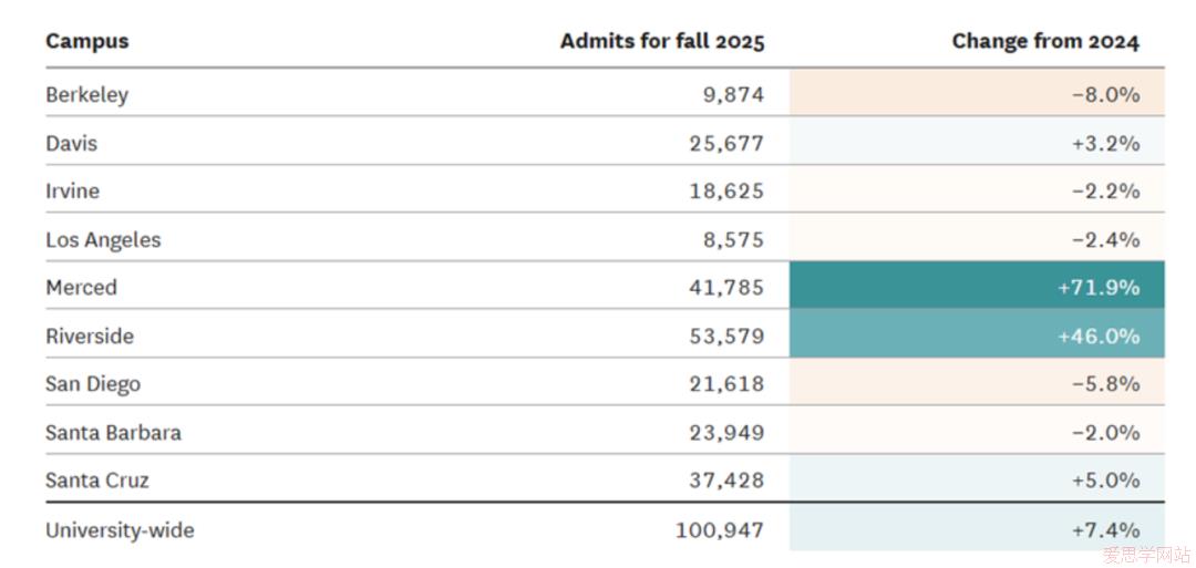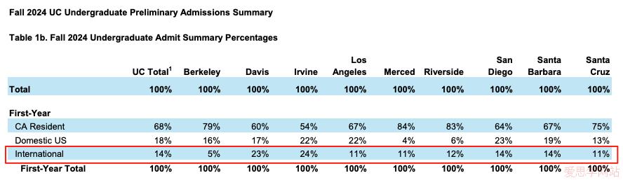24-25申请季,国际新生录取总数增加了3,263名,同比增幅达到17%。其中,录取率较高的分校为:戴维斯分校(26%)、尔湾分校(26%)、圣地亚哥分校(19%)与圣塔芭芭拉分校(21%)