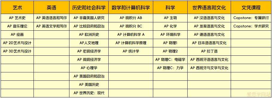 AP课程(Advanced Placement)也称美国大学先修课程,由美国大学理事会(College Board)主办,是面向高中生开设的相当于大一水平的课程。